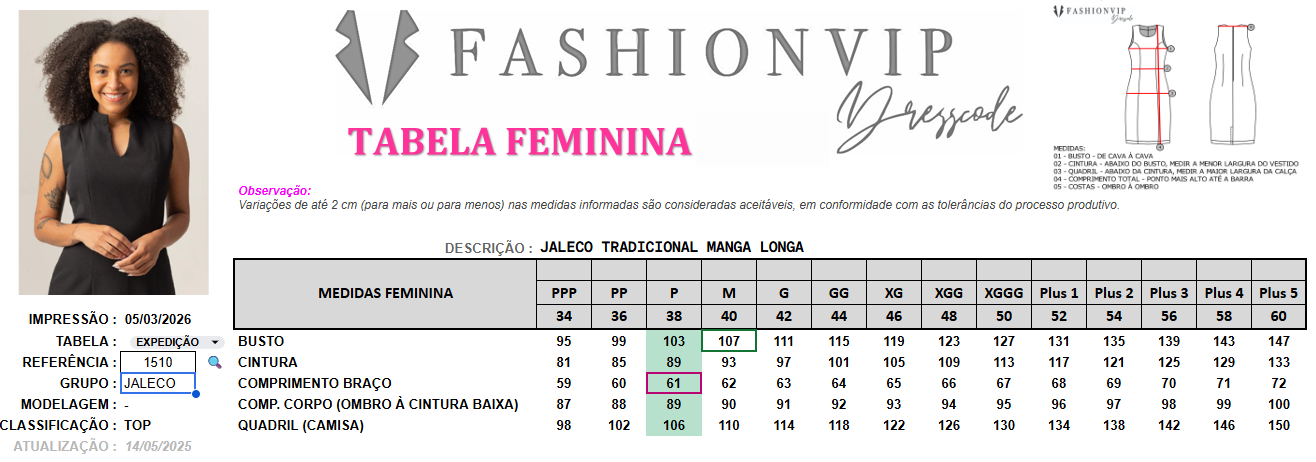 tabela de medidas: