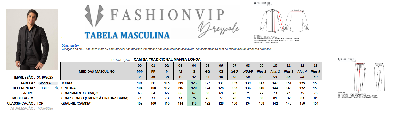 TABELA DE MEDIDAS: