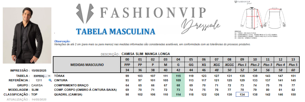 TABELA DE MEDIDAS (DISPONIVEL TAMBÉM NAS FOTOS)