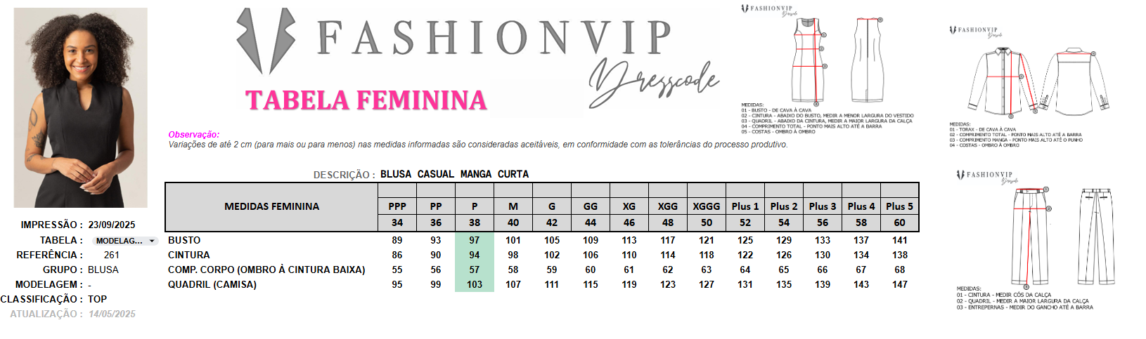 TABELA DE MEDIDAS;