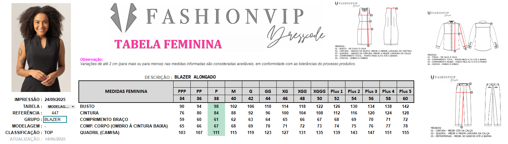 TABELA DE MEDIDA: